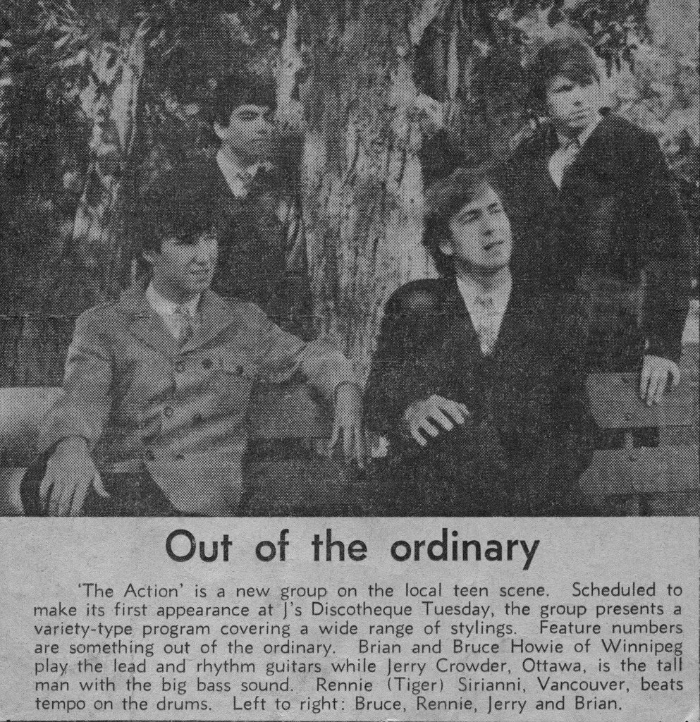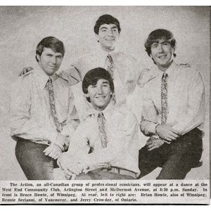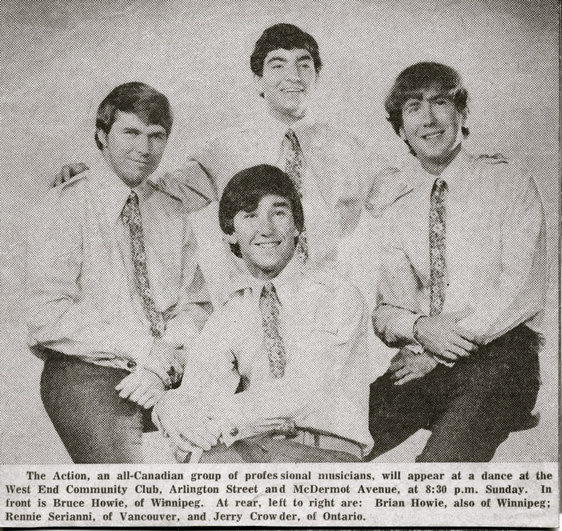 The Action formed in Winnipeg, Manitoba after the Howie brothers completed high school in Shilo. Brian, Bruce and Rennie Sirianni had previously played for two years as The Saints, an instrumental group that developed while the three were teenagers; Jerry Crowder, who lived in Ottawa, joined them during summer breaks. As high school ended, the group decided to move beyond instrumentals, adding vocals and original material to their repertoire.