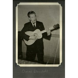 Like many children of immigrants, Omar Blondahl, who grew up in Winnipeg, did not start speaking English until he began school. By the time he reached high school he had studied piano, violin, voice, and music theory, and had performed in local Gilbert and Sullivan operettas. By his late teens he was working in radio dramas. In 1943, following several years of Army service, he returned to radio, working for the next eight years at radio stations in western Canada as a dj, announcer, and performer. As a performer he was involved in drama and music. He played some fiddle but mainly rhythm guitar in old-time music orchestras and sang folksongs to his own guitar accompaniment as a soloist.