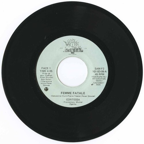 These francophone tracks share similar arrangements to songs originally done by Chéri in 1982. "Super Star" uses similar instrumentation as "Star Struck" and "Femme Fatale" is a different version of "Murphy's Law". Both are found here: https://citizenfreak.com/titles/327214-cheri-st