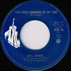 Gail Dahms was born on June 27, 1957 in Kitchener, Ontario. She was working in a French language version of South Pacific when she was spotted by an executive at Axe Records. She was still in high school when she signed a 5 year recording contract with the label. She had one hit, “Can’t We Somehow”, in 1976 but continued to work as a singer and actor. She is probably best known for her role in a Smiles & Chuckles Turtles chocolate commercial where she plays a Marilyn Monroe character who dances with turtles and sings the line “Oooo, I love Turtles”. She is now known as Gail Dahms-Bonine. Her only singles to hit the Canadian charts were "Can't We Somehow" and "Rescue Me," both in 1976.