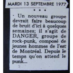 Danger is one of the first French-speaking punk bands in Quebec in the 70's. Danger est l'un des premiers groupes punk francophones au Québec des années 70.