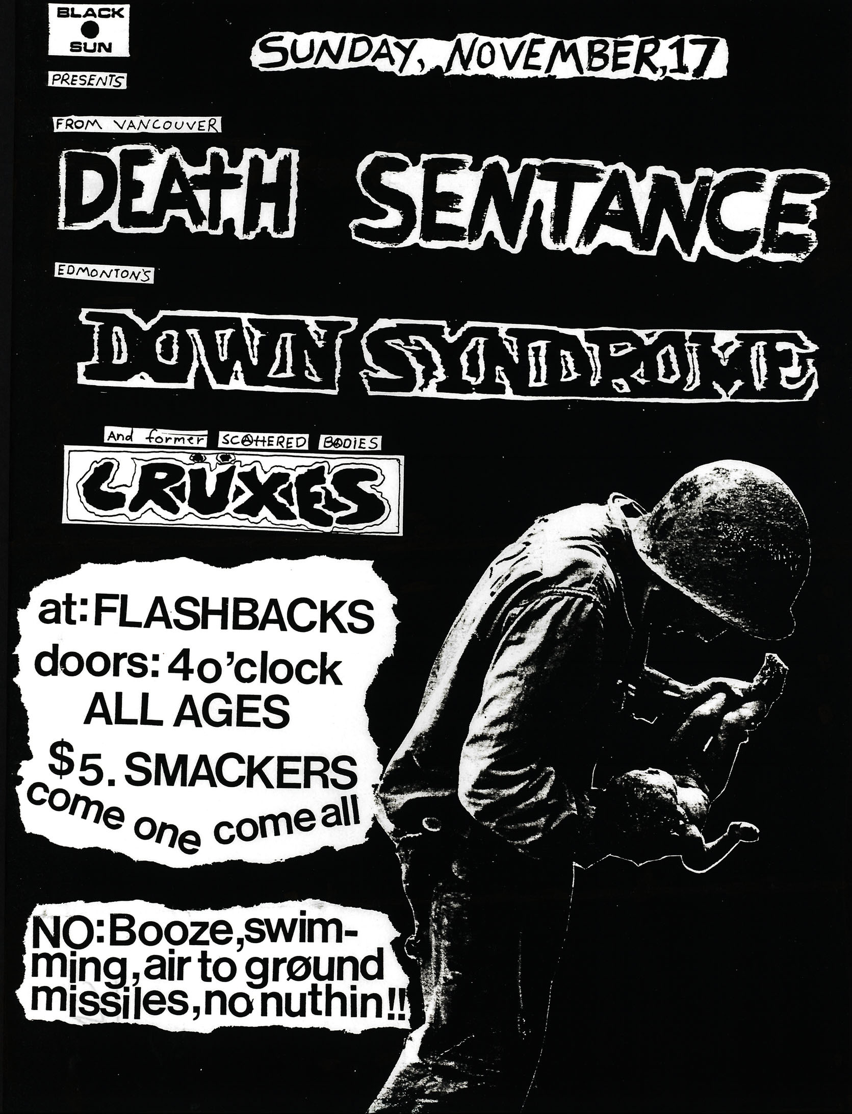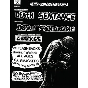 1985-11-17_Death Sentence + Down Syndrome + Cruxes_Flashbacks (Edmonton AB)_flyer_+