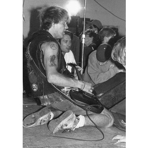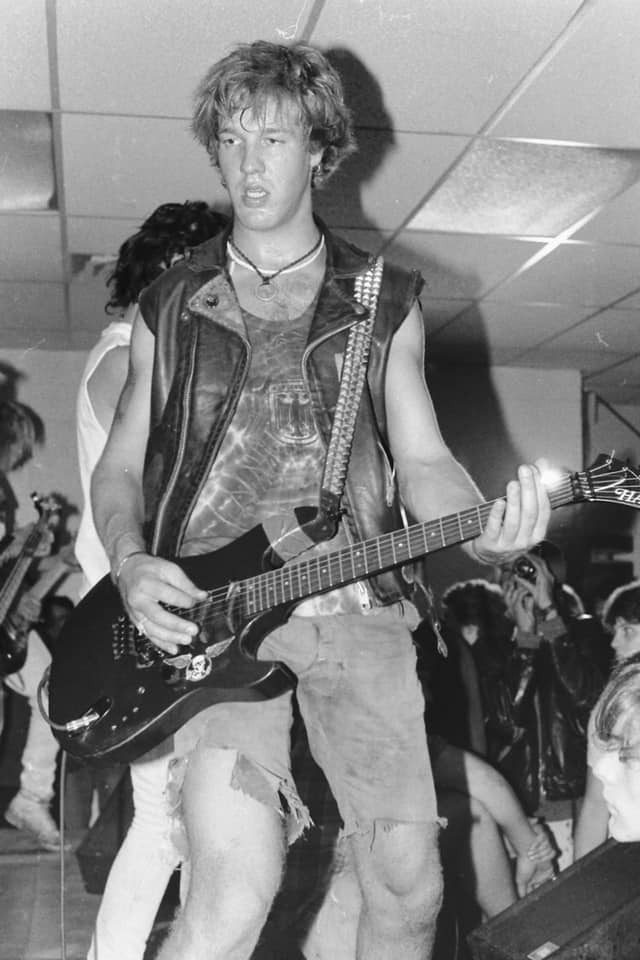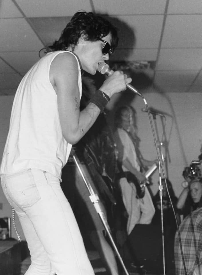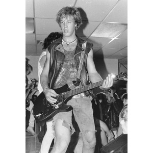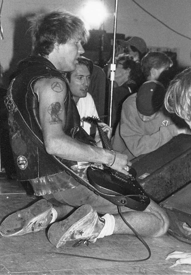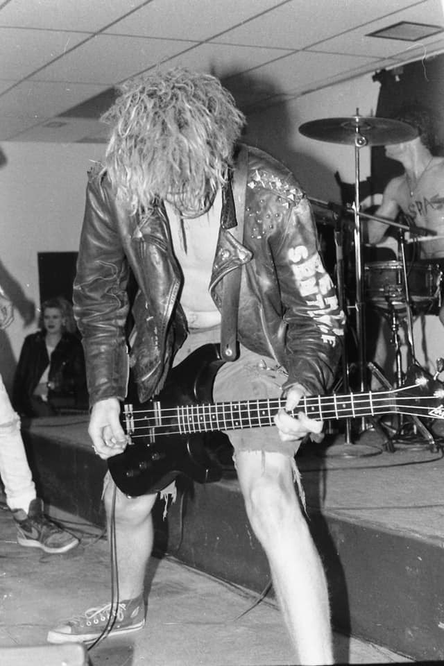 1986 tour rehearsal. Dave Dork's Sk8 shop basement rehearsal we had locked down. Broadway Ontario. L-R Syd Savage, Pete 'cleaver nipplehead Keller, Tim Challenger, Jim Sigmund, me at 20.