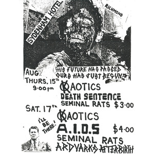 1985-08-15_Kaotics + Death Sentence + Seminal Rats_Sydenham Hotel (Richmond, Australia)_flyer_+