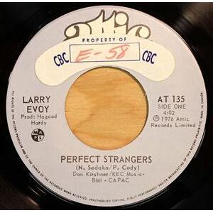 But in 1974, amid the last few years of personnel changes and differing musical directions, the band split up, and Larry Evoy started a solo career. He signed with Attic Records and in ’76 released the single, “Perfect Strangers,” which made it to the top 30 in Canada by that December while finishing touches were being put on his self-titled debut album.