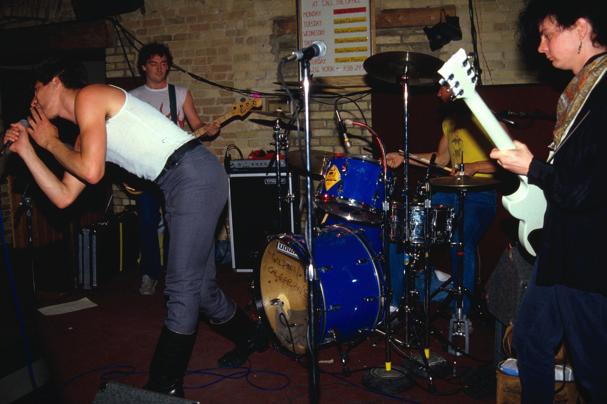 By the time they recorded their debut LP, It’s Fun to Be Alive, in 1981, Fawcett had departed and guitarist Doug Smith had joined, completing the lineup that most Calgarians remember: Bruno up front, Doug Smith on guitar, Dave DeGrood on bass, and Jeff Smith behind the kit. They were a relentless live act, playing anywhere in the city that would have them and touring widely across Canada. Their debut album showed a band experimenting with new wave angles and post-punk jolts, but nothing softened their basic identity—loud, strange, funny, and impossible to mistake for anyone else.