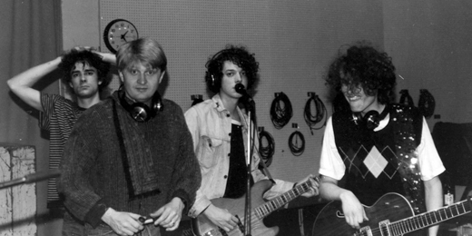 By raising money at flea markets and garage sales the act was able to record 4 songs with up-and-coming producer/engineer Greg Reely in July and August 1984. Unbeknownst to the band, a cassette recording of the material was passed along to Terry McBride of the newly formed Nettwerk Records in Vancouver, which led to the band being signed and releasing the tracks as a self-titled EP in December 1984. The band played a farewell gig in hometown Kelowna, packed up Tom’s station wagon and the Grapes Of Wrath moved to Vancouver.
