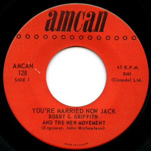 After relocating with his family to Dryden, Ontario, Griffith eventually settled in Toronto, where he entered the city’s club circuit in the mid-1960s. During this period he fronted The New Movement and made his first commercial recordings. Two singles document this early phase: “You’re Married Now Jack” b/w “Cheater, Cheater” (1966, Amcan AMCAN 128) and “Tough Guy” b/w “Yes, It’s Me” (1967, Stone SX 720). Both releases are credited to Griffith as songwriter and place him in a straightforward mid-1960s rock context, years before his later adult contemporary and broadcast-oriented work. Neither record received sustained promotion, as both labels were short-lived, and the project did not continue beyond these two releases.