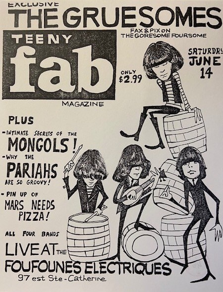 Consisting of teens who dressed like they were stuck in the '60s -- including bowl haircuts -- the Canadian group known as the Gruesomes formed in 1985 in Montreal. Original members were guitarists and singers Bobby Beaton and Gerry Alvarez, and a pair of brothers, drummer Eric Davis and bassist John Davis. Drummer John Knolls replaced John Davis a couple of years later. The Gruesomes recorded three albums in the '80s and made a couple of music videos.