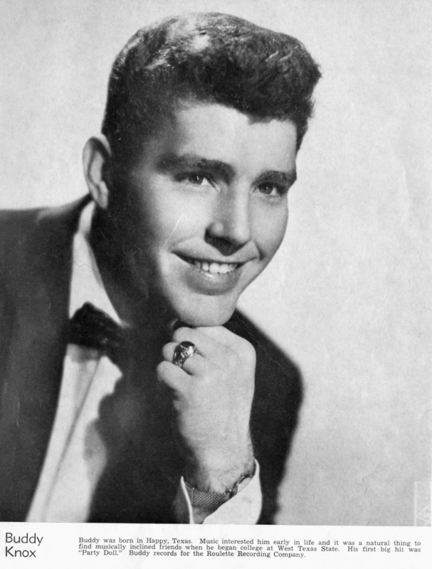 Buddy Wayne Knox, born July 20, 1933 in Happy Texas; was the first artist of the rock era to write and perform his own number one hit song, "Party Doll". The song earned Knox a gold record in 1957 as well as a BMI million performance award. Knox was the very first Texas rockabilly artist to be awarded a gold record and he was one of the innovators of the southwestern style of rockabilly that became known as "Tex-Mex" music.