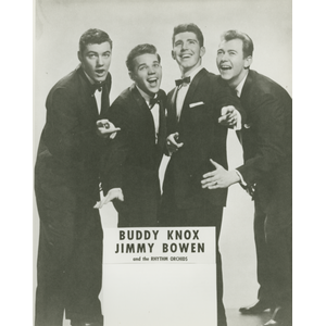 While a WTSC, Knox met two other students, Jimmy Bowen and Don Lanier. The three formed a band called the Rhythm Orchids, named after their orchid colored shirts they wore. They played in local clubs for beer and food, singing songs until they were thrown out for being under age, but Buddy Knox and the Rhythm Orchids had developed a following. They became the hottest local band around.