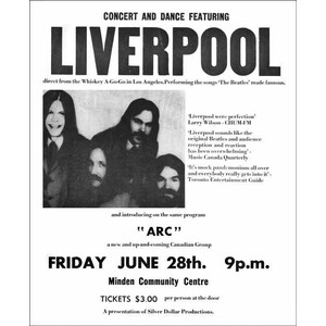 Saskatchewan natives Brian Meissner and Laurie Currie originally found notoriety in the Winnipeg showband Sugar & Spice. By 1972, the band had changed its name to Spice and relocated to Toronto. When Spice broke up, Meissner and Currie launched a Beatles tribute act called Liverpool, with Miessner on bass and lead vocals, Currie on vocals and drums, David Moyles on guitar, and Rick Pearson on vocals and guitar. This original lineup played the first-ever Beatles Festival The Fest for Beatles Fans in New York City in 1974 and, that same year, played the famed Whisky a Go Go in Los Angeles. In 1976, Liverpool had two Canadian hits: "Down To Liverpool" charted at #69, "Dolly" (written by Miessner and produced by Ian Thomas) charted at #24.