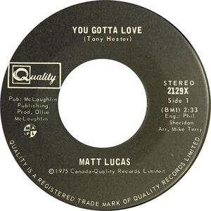 In 1974 he returned to Ollie McLaughlin in Detroit and recorded "You've Gotta Love" backed with a song called "I'm So Thankful". Musicians on the session included Minnie Ripperton, Donnie Hathaway, and Phil Upchurch. The single was released in 1974 or 1975 on Quality Records, Canada's largest independent record company. The record became a hit in Canada, and also appeared on an album called "Disco mania" with songs by acts like Van McCoy, Gloria Gaynor and The Ohio Players.