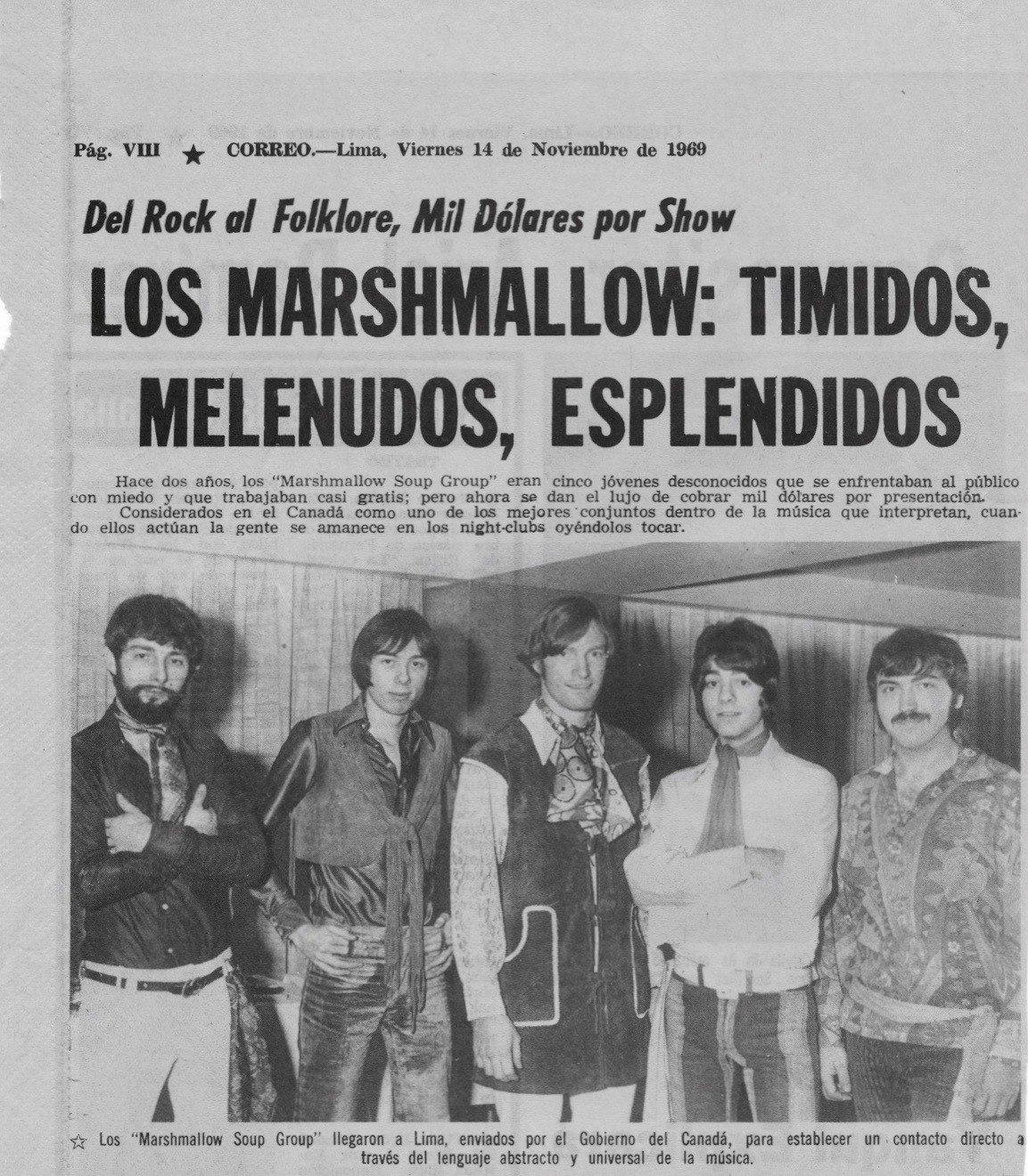 Uniquely, the release of “I Love Candy” was timed to coincide with the band’s selection as Goodwill Ambassadors of Canada by the Federal Department of Trade and Commerce. In late 1969, Marshmallow Soup Group traveled to Lima, Peru to perform at the International Trade Fair, where they played multiple daily sets at the Canadian Pavilion, appeared on Peruvian television and radio, and participated in hospital and community visits. The trip was widely covered by RPM, which highlighted both the promotional value and the government-backed publicity surrounding the band’s international appearances.