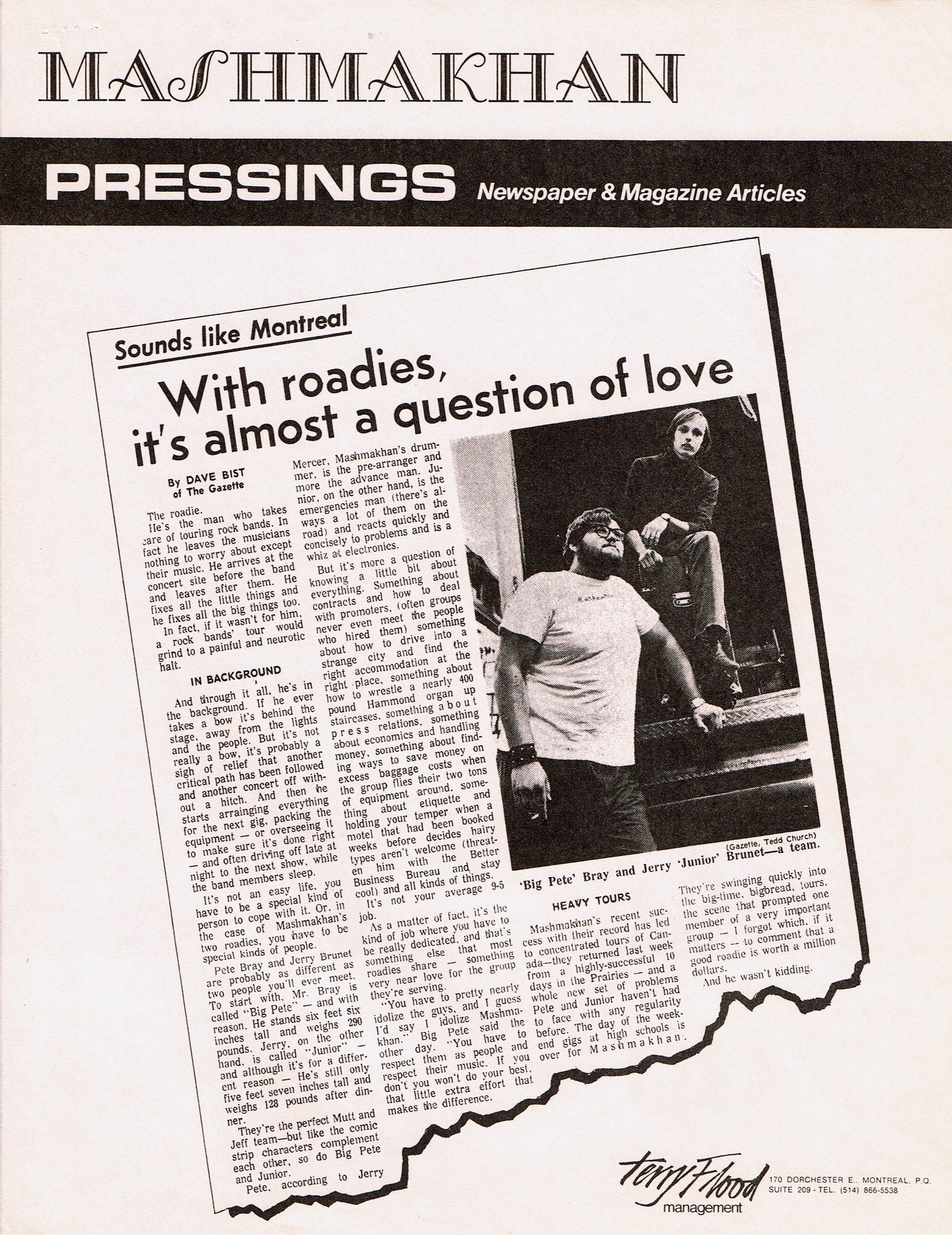 The international success of the single 'As the Years Go By,' a pop song atypical of the band's venturesome, improvisational style, led to concerts in the USA and Japan, including a Tokyo appearance in 1971 before an audience of 40,000. A second album, Family (Epic E30813), was issued in 1971. Mashmakhan disbanded soon after. Efforts to revive the group during the mid-1970s involved, variously, Sénécal, Allan Nichols (vocals), Brian Greenaway (guitar), Steve Lang (bass), Lorne Nehring (drums), and others, and further singles were issued by Aquarius Records.