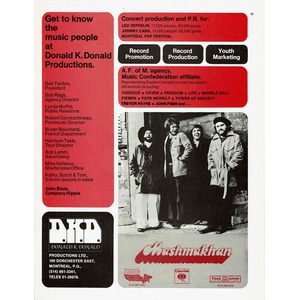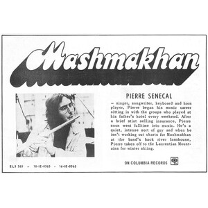Named after the biggest drug dealer of the city, Mashmakhan was a Montreal quartet that rose to national attention before cross-town rivals of XXX and Morse Code Transmission: they even had an international hit (third biggest ever in Japan) with As The Years Go By on their first album. Lead by the multi-talented Pierre Sénécal, the group had started out as Triangle, a back-up band to Trevor Payne, but by the end of the decade, he was history and Mashmakhan was happening with some wild psych rock. On stage, the group's presence consisted of drummer Mercer's impressive bearded looks and drumming, while bassist Edwards sang and Sénécal's keyboards and wind instruments provided more visual focus.