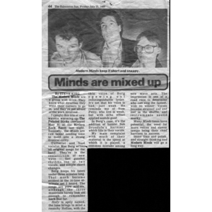 A July 1980 Edmonton Sun review described a 16-song, 40-minute set as “pure mid-60s,” citing Moe Berg’s vocals as “thin” but enthusiastic and supported by Drysdale’s harmonies. While critiquing the band’s tendency to play at breakneck speeds, the review praised their drive and raw potential: “Some time and polish, and straight thinking, and Modern Minds will go a long way.”