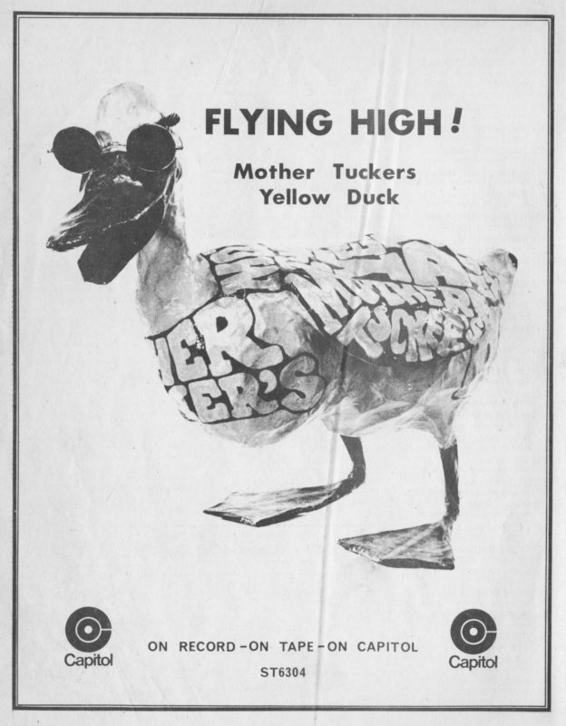 West Coast quintet Mother Tucker's Yellow Duck was formed in 1967 - not as a group of musicians but as a collective consisting of Kathy Kay from Boston who was the original Mother Tucker, John Patrick Caldwell as The Yellow Duck (aka Raphael Red The Village Idiot), Bob O'Connor (aka Dogan Pink Foot/Sheldon O'Dogan), and Michael Goldman (aka Garnet Crystalman).
