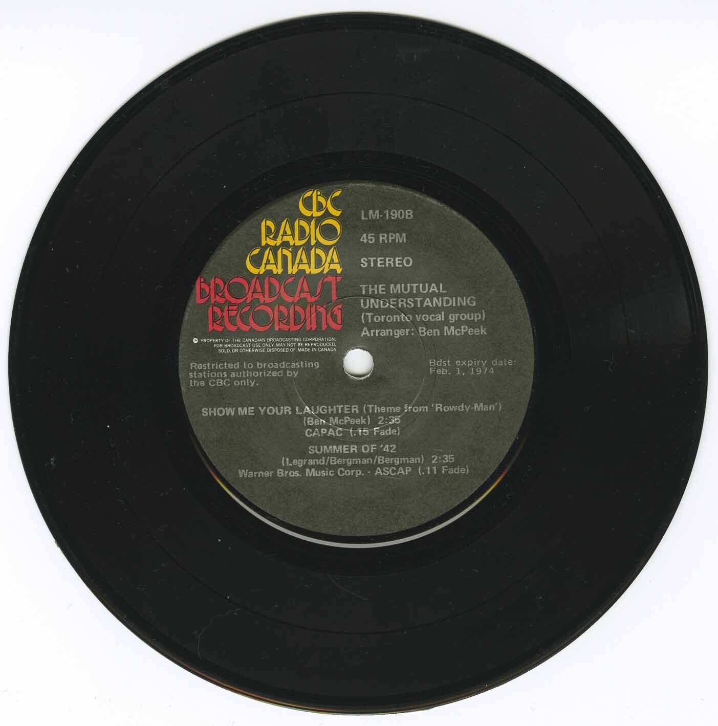 That same year, McPeek served as musical director for In Wonderland, a CBC Radio Canada transcription LP credited to The Mutual Understanding and issued jointly by Nimbus 9 Productions and CBC Radio Canada. Recorded at Hallmark Studios in Toronto and produced by Dave Bird and Jack Richardson, the album documented a purpose-built vocal ensemble led by Laurie Bower, with McPeek shaping the repertoire, arrangements, and overall sound. Blending sunshine pop, jazz-inflected orchestration, and broadcast-era sophistication, In Wonderland was not a commercial retail release but a CBC transcription pressing circulated primarily to radio stations. Over time, it has come to be regarded as one of the most sought-after Canadian recordings of the era and stands as one of the clearest expressions of McPeek’s work as an arranger and ensemble architect outside the rock-production framework of Nimbus 9.