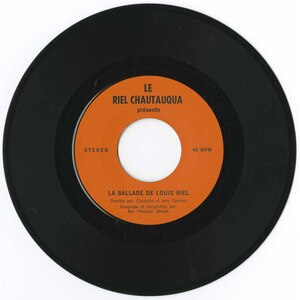 Joseph Gespard Jeanotte - Chanson de Riel, "Folk Songs of Saskatchewan", LP, folk, 1963, Folkways FE 4312. "This is purported to have been written by Riel when he was in prison. In one sense the history of Riel is a romantic one although to many people he was a trouble maker, to others he was a hero and the Metis of the Qu'Appelle think of him kindly and with veneration. We drank to his memory before this song was sung (which to the writer's knowledge was not recorded before)."