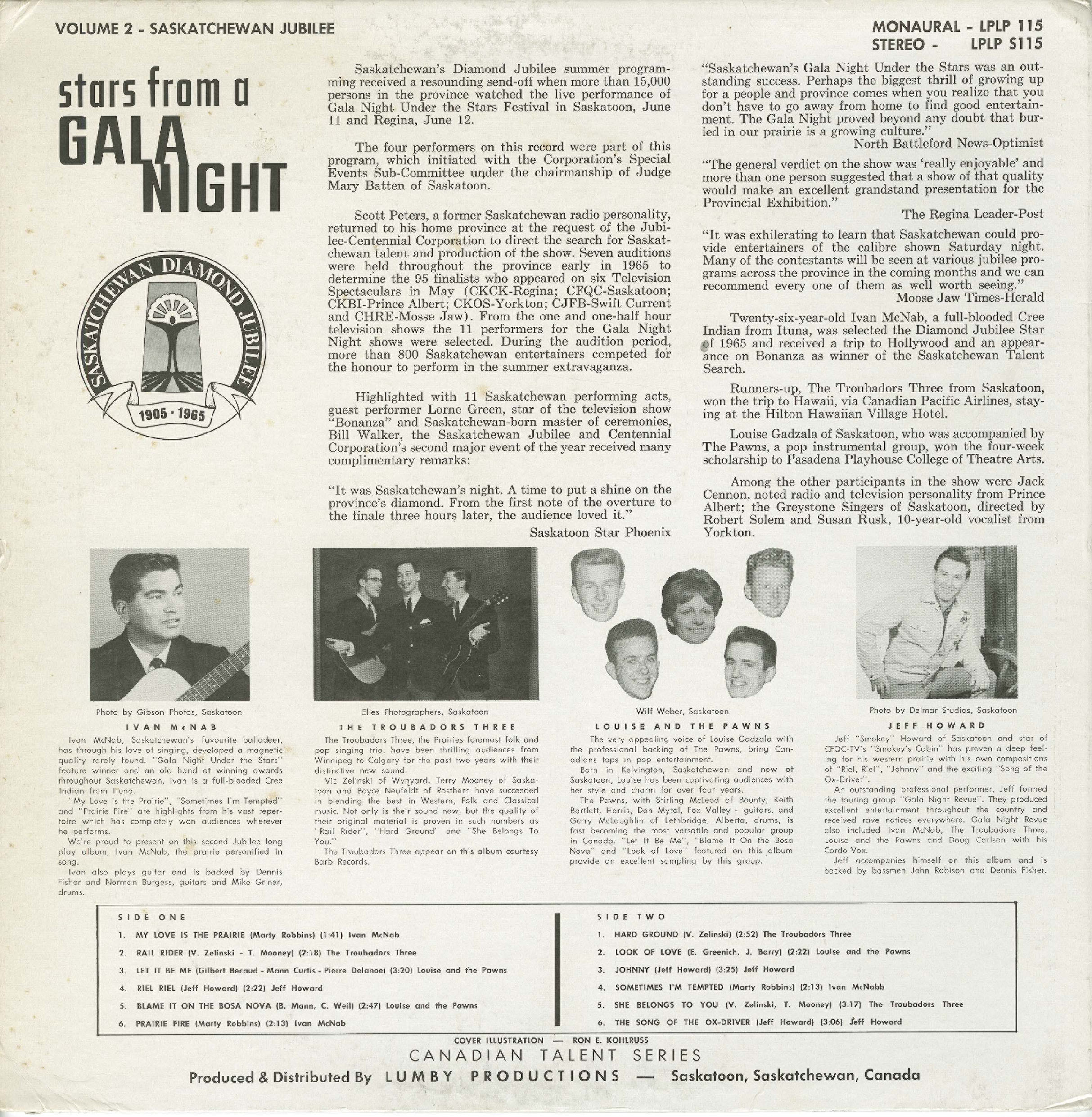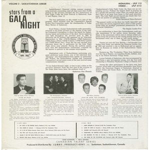 Jeff Howard with John Robison and Dennis Fisher - Riel Riel, "Stars From a Gala Night: Saskatchewan Jubilee", 1965, Lumby Productions, LPLP 115