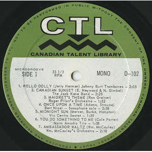 But CTL records were produced originally for broadcasting in Canada where they helped radio stations meet and exceed the CANCON 30% regulation. They were used extensively by the BBC in England and to various degrees on U.S. stations and by radio music suppliers that had discovered them.