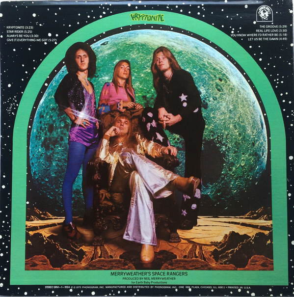 In 1974 Merryweather put a new band together called the Space Rangers. Through friend Morey Lathower (VP of A&R at Capitol) he was able to secure time at Capitol Records studios and in two nights he recorded the Space Rangers' first album. Neil used whatever funds he had left after the Mama Lion years and supported the new band until the money ran out. Unfortunately so did the band's keyboardist and guitarist. Neil's Mama Lion road manager Robbie Randal stuck with Neil and took the tape of the Space Rangers album into the office of Chip Taylor (Canned Heat). When the album was played Chip's brother Jim Taylor heard the new sound and offered to manage Neil. Taylor got a deal with Mercury Records and Neil was signed. Original Space Rangers drummer Tim McGovern remained loyal to the band and Neil hired keyboardist/guitarist Jamie Herndon and lead guitarist Michael Willis and the new band was ready to go. Neil bought a Chamberlin keyboard from Sonny & Cher. The Chamberlin was a key to the Space Rangers sound. The band was booked into the Whiskey when the Space Rangers album was released (1974). The album went to the No. 5 most added on radio airplay chart in two weeks. The label did nothing to support the album or the band. Six months later the small advance Neil got for Space Rangers was all but gone and in desperation to keep the band together Neil took the band into Village Recorders and in five days wrote all the songs, recorded and produced his second album for Mercury called Kryptonite. The label bought the album and it was released in 1975. The label still did not do anything to help the band or push the albums. Neil disbanded the Space Rangers due to lack of support and to weak management. The Space Rangers and Kryptonite albums received the highest praise from critics worldwide and Kryptonite was voted into the top five Psych Rock albums of the Seventies in an internet poll. Notable cuts included a cosmic psych rock version of The Byrds' "Eight Miles High" and the David Bowie-inspired single "Hollywood Blvd.", as well as the blistering autobiographical rocker "The Groove". The albums continue to gain a cult following to this day.