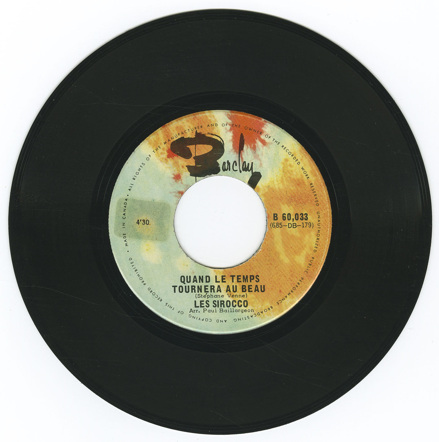 | Sirocco, Les | Quand le temps tournera au beau (Stéphane Venne) | Quand le temps tournera au beau b/w Parce que je t'aime (By the Time I Get to Phoenix) | 04:30 | |