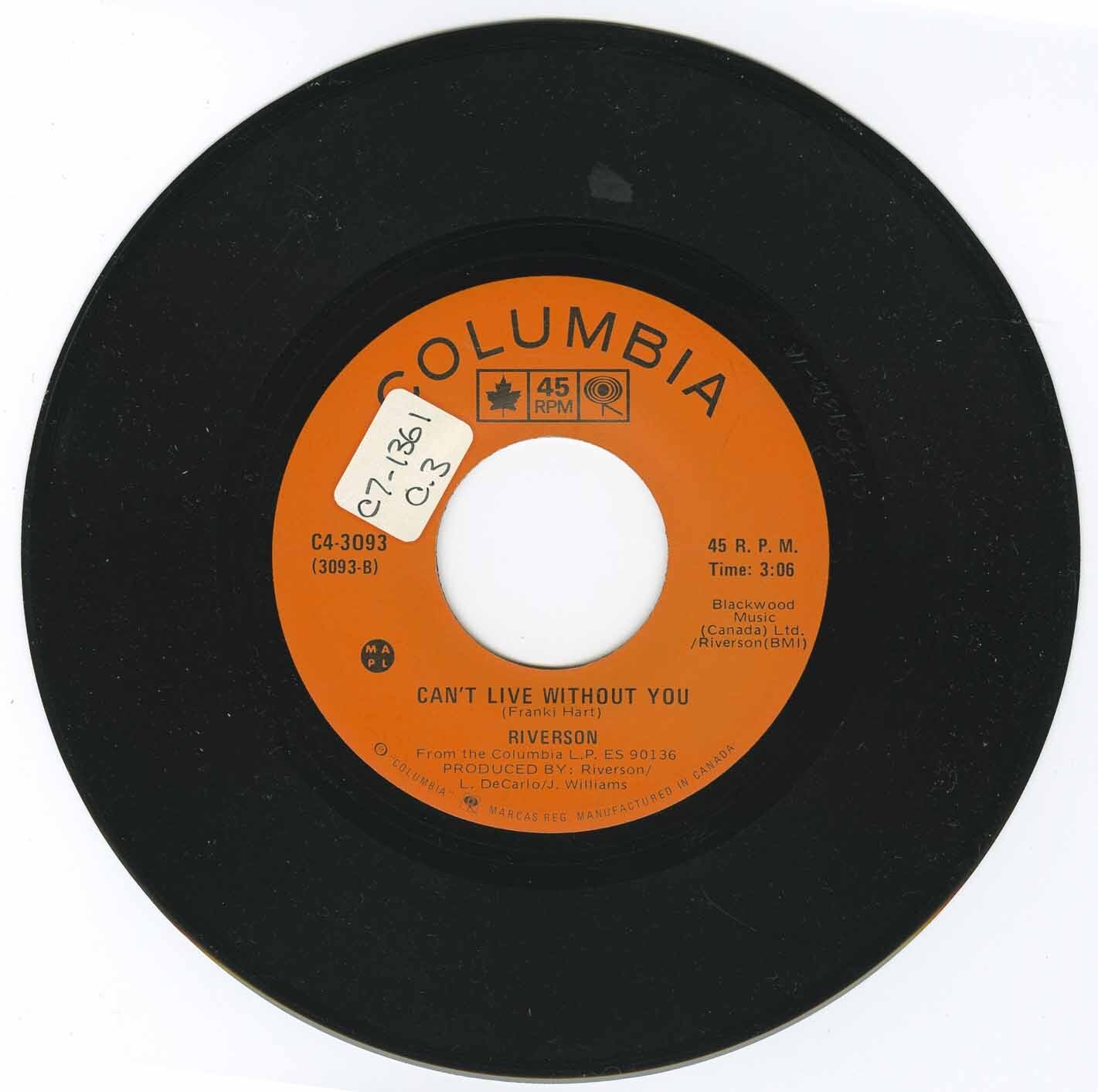 | Riverson | Can't Live Without You (Franki Hart) | Eleanor Rigby b/w Can't Live Without You | 03:07 | |