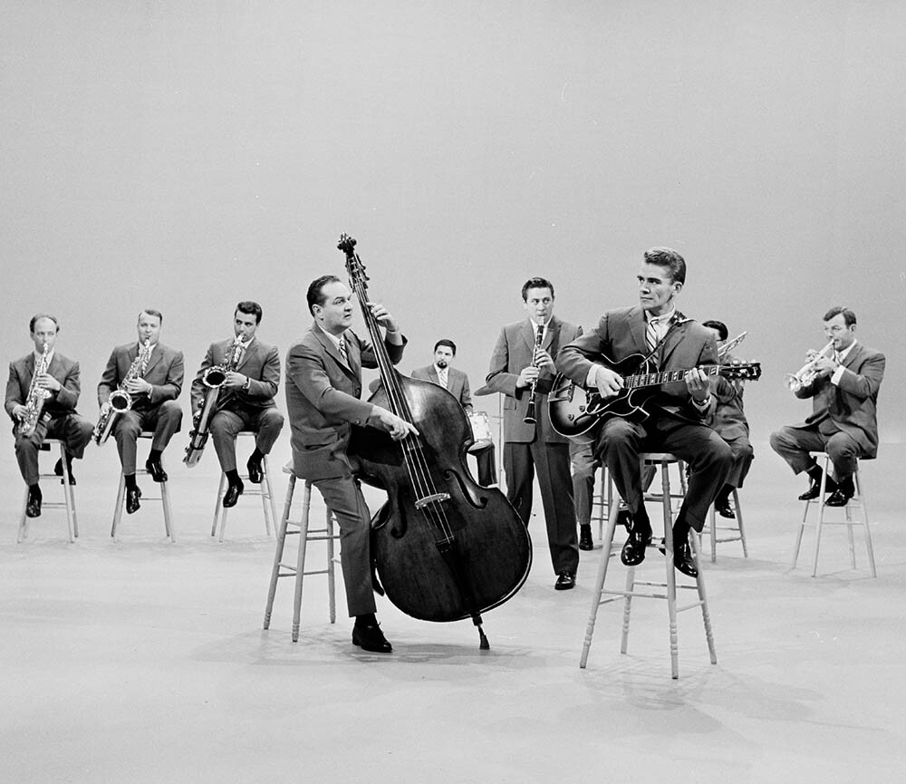 In 1953, the Phil Nimmons Group was formed for “kicks,” according to its founder. The band made its public debut at the Stratford Festival in 1956 and, upon the recommendation of Mr. Peterson, signed to the Verve label. By 1957, the band was called Nimmons ‘n’ Nine. The name of the enlarged Nimmons ‘n’ Nine Plus Six in 1965 was whimsically supplied by the well-known CBC broadcaster Bruce Marsh.