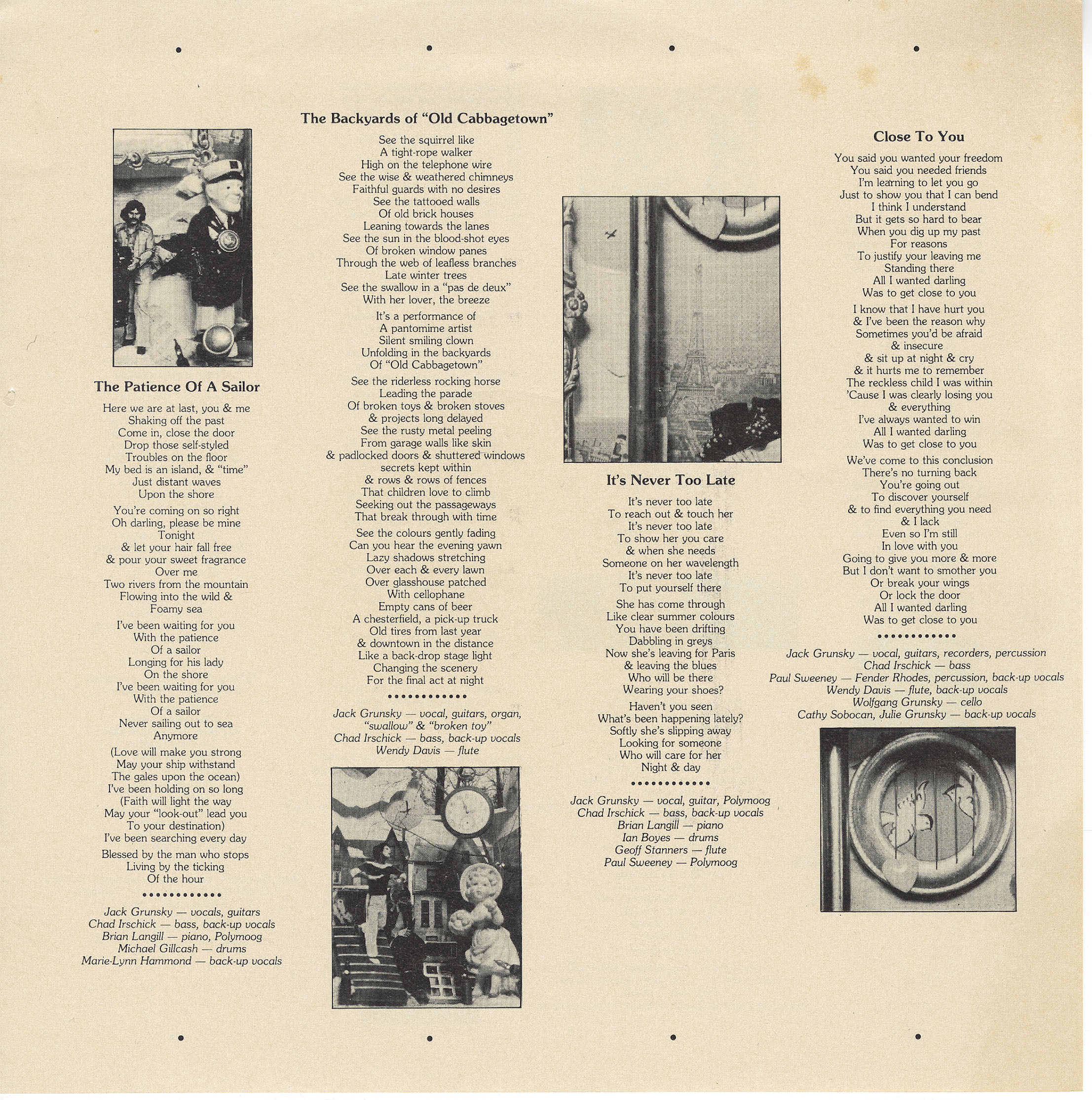 In 1974, Jack returned to Toronto to reconnect with his Canadian musical roots. He collaborated with producer Chad Irschick on The Patience Of A Sailor in 1978 and became a regular performer at coffee houses and folk festivals in Ontario. He also continued his music studies at the Royal Conservatory of Music, solidifying his versatility as an artist.