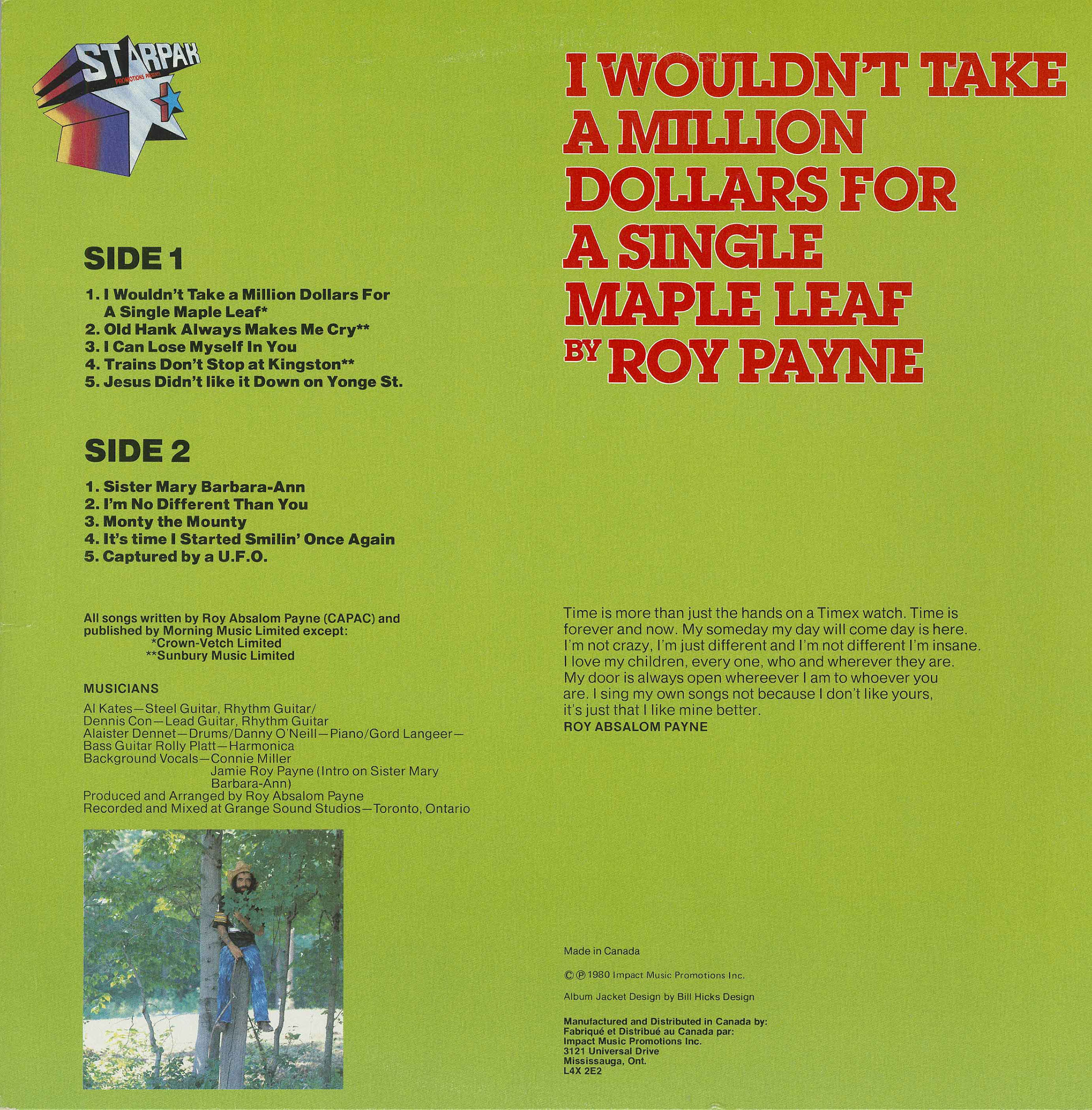 | Payne, Roy | I've Been Captured by a U.F.O. | I Wouldn't Take a Million Dollars for a Single Maple Leaf | 03:31 | |