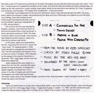 The music captured here documents that unruly energy. Some of these bands barely lasted long enough to release a single; others went on to international cult status and are still playing! Many shared members, rehearsal spaces, and borrowed gear, but what united them was an absolute refusal to play by the rules. Lyrics railed against war, boredom, authority, and suburban conformity, while the sound careened from primal two-chord anthems to jagged art-punk experiments.