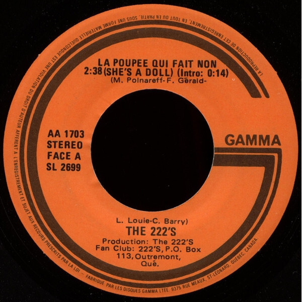 222's - La poupee qui fait non (She's a Doll) b/w La poupee qui fait non (version instrumentale)
