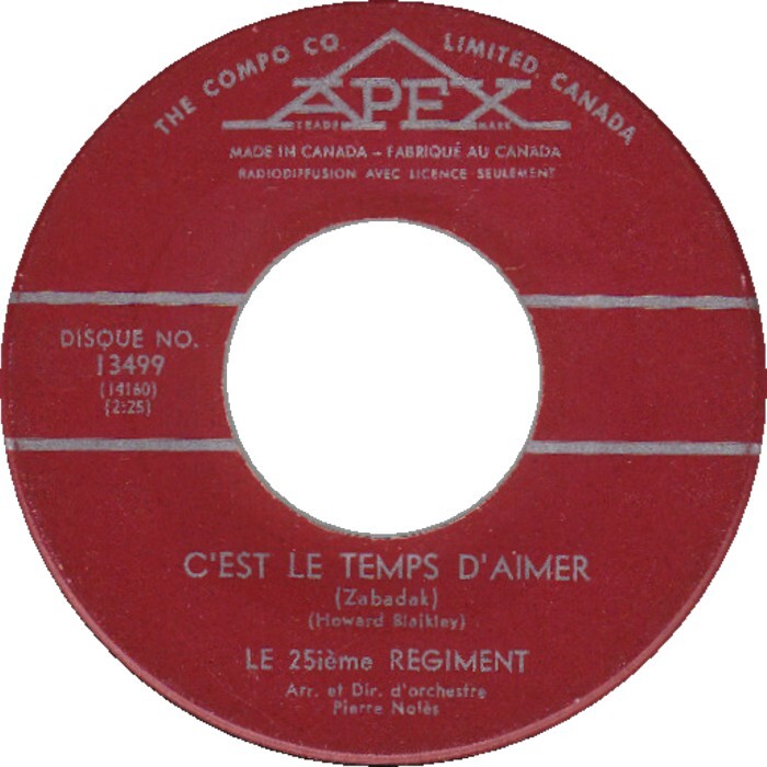 25e Régiment, Le - C'est bon signe (Bottle of Wine) b/w C'est le temps d'aimer (Zabadak)