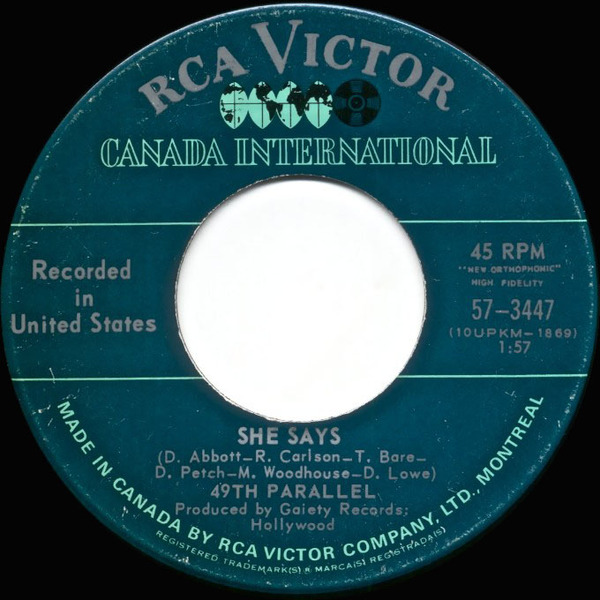Released in November 1967, She Says backed with Citizen Freak captured 49th Parallel at their most direct and energetic. The Calgary group was still young, still sharpening their identity, and this first RCA single shows a band pushing forward with confidence. She Says is a tight, fast-moving garage track built on bright guitars and a firm vocal line, the kind of song that would have sounded at home on any regional teen radio show of the era. Later reissue research identified these early sides as defining examples of “Prairie punk,” a sharper, more urgent strain of Western Canadian garage rock that set the band apart from their contemporaries.