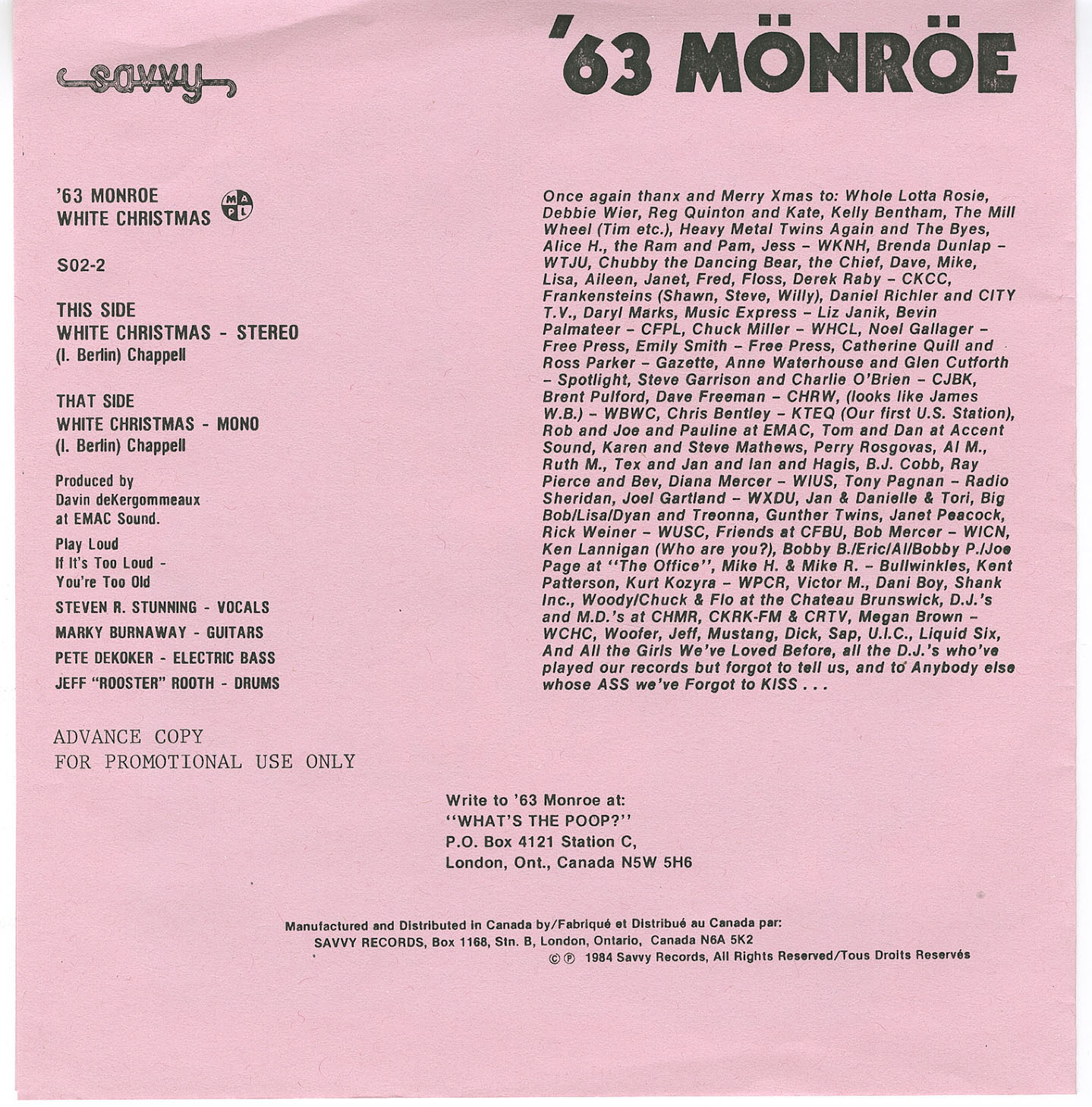 Label: Savvy Records S02