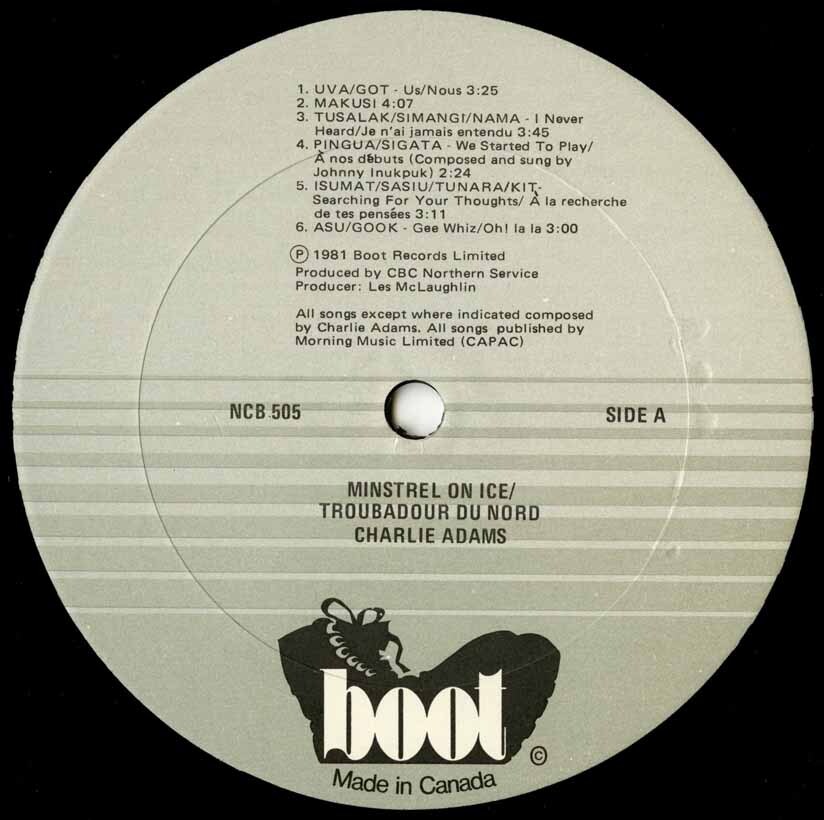 At a time when many Inuit musicians were organizing into groups and staging performances in the villages and hamlets across the Keewatin and Ungava districts, Charlie Adams struck out on his own. He preferred to work alone – not out of pride or ego – just to better reflect the way he saw the world.