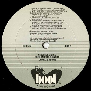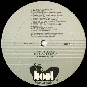 But unlike many Inuit musicians of his era who formed bands and performed collectively, Adams deliberately chose the solo path. Not out of pride, but because working alone allowed him to reflect the world as he truly saw it. His songwriting was introspective, emotionally vulnerable, and unflinching—qualities that sometimes challenged expectations within his own community. As he wrote in the title track of his 1981 LP Minstrel on Ice, Adams often struggled with the fact that his music, so personal and heartfelt, could be met with confusion or ridicule by fellow Inuit. “His fellow Inuit are not used to personal expressions,” observed the liner notes, “to public displays about matters of the heart or spirit... he’s not angry about this, but puzzled.” That puzzlement—quietly dignified—became a signature of his artistic stance.