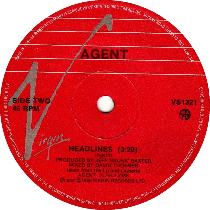 Agent - She Trusted Me b/w Headlines (picture sleeve)