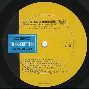 Agostini’s recordings for the Canadian Talent Library further showcased his versatility, with albums such as Mas Mucho Lucio (1968), which featured his original compositions Leah’s Latin Lover, Caramba, and Black Rose, and Cold Shoulder and Hot Brass, a brassy set of standards and originals. His centennial soundtrack Once Upon a Hundred Years (1967), recorded with Moe Koffman, Rob McConnell, Guido Basso, and other leading Canadian jazz musicians, remains a vibrant time capsule of the optimism and energy of 1960s Canada.