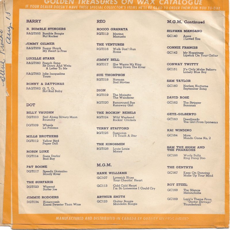 Manitoba, The Garage, 1960's, Quality Records