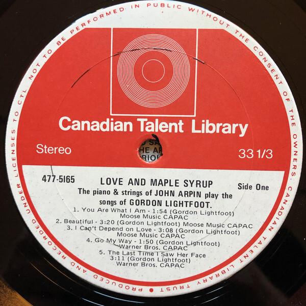 Arpin, John - Love and Maple Syrup: John Arpin Plays Lightfoot