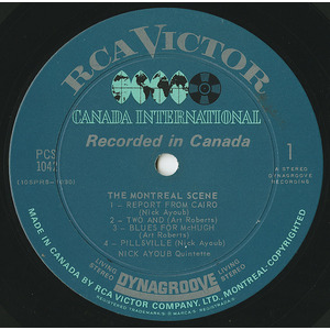 In 1964, he assembled the Nick Ayoub Quintet for a CBC International Service broadcast, which led to a high-profile performance at the Montreal Jazz Festival and the group’s landmark album The Montreal Scene (RCA Victor, 1964). Featuring Art Roberts, Al Penfold, Michel Donato, and Cisco Normand, the record captured the sophistication and vitality of Quebec’s resurgent jazz community. Ayoub’s compositions from the album—including “Report from Cairo,” “Ya Habibi,” and “Pillsville”—reflect his global influences and modal sensibility.