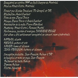 Les jours précédant l’enregistrement public sont le théâtre d’un cambriolage en règle du local de répétition. Tout l’équipement du groupe s’est mystérieusement volatilisé : instruments, amplis, banques de compositions… Crime signé de trois consonnes symboles de haine ou vol crapuleux maquillé, les rumeurs vont bon train pendant que la vérité s’évanouit dans les terrains vagues du quartier Saint-Henri. La solidarité s’organise mais Banlieue Rouge est victime d’un nouveau coup du sort quand le bar où doivent se dérouler les concerts ferme ses portes. Bien décidés à aller au bout de leur idée, les banlieusards déménagent leurs pénates au Café Campus pour trois représentations. À défaut de conditions optimales et malgré l’adversité, ce bilan sonore de cinq années d’activisme musical porte les marques d’une rare authenticité, brute de tout arrangement en post-production. Paru en décembre 1994, cet album tient aussi lieu de sincères salutations aux compagnons de route et de galère. Après quelques dates au Québec pour assurer la promotion du disque, la formation se reprend à survoler l’Atlantique pour une vingtaine d’exactions dans l’hexagone sous une nouvelle formule. Safwan malmène désormais une deuxième guitare pendant que Jean-François achève sa conversion à la batterie. La prestation du quatuor est particulièrement détonante aux Francofolies de La Rochelle et lui vaut les félicitations officielles de la ministre de l’emploi et de la solidarité du gouvernement du Québec. Cette dernière n’a manifestement pas assisté au concert dans la Salle Bleue d’une Coursive où les bancs n’ont pas résisté à l’enthousiasme d’une assistance survoltée. De retour à Montréal et après la parution d’un vinyle de type « best of » en Germanie, Banlieue Rouge concentre toutes ses énergies vers la conception de son prochain album dans lequel certains journalistes iront jusqu’à voir la maturité.