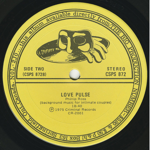 Back in the romantic period of 1975, the average mating cycle of a typical heterosexual human interlude lasted 22 minutes; the amount of time which coincided with the length of time one side of an LP will play. And thus was the impetus for the “Insertion” project. On Side A, the music starts out as slow as smooth jelly will roll away on a smooth naked belly; over time, it organically cultivates until it reaches an exhilarating climax. The flip side of course is the serenity of the afterglow.