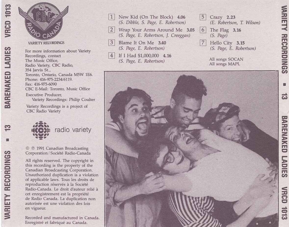 Ultra-rare CBC Variety Recordings by the Barenaked Ladies containing demo stripped-down versions of songs that later appeared on their debut album, Gordon. This promotional item was released prior to the "yellow tape" and was sent out to radio stations in Canada and was never made commercially available and has become a collector's item, selling for more than $200.00.