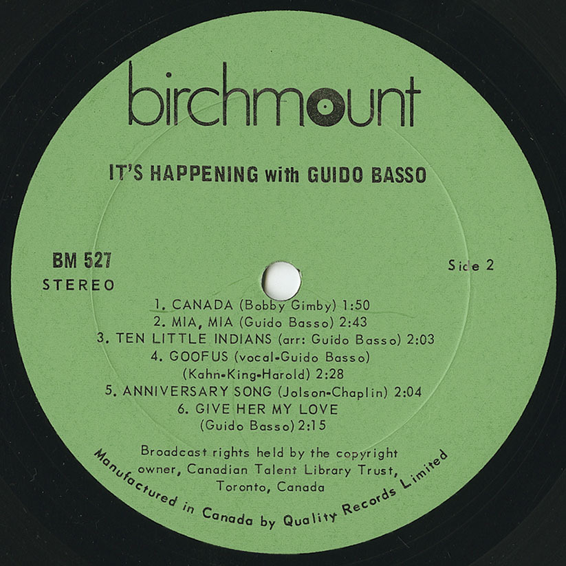 As studio work declined in the late 1970s, Basso shifted much of his professional focus toward leading what became one of Toronto’s most successful society orchestras, maintaining a high level of performance activity well into later decades. His contributions to Canadian music were formally recognized in 1994, when he was appointed a Member of the Order of Canada. Guido Basso passed away on February 13, 2023, at the age of 85.