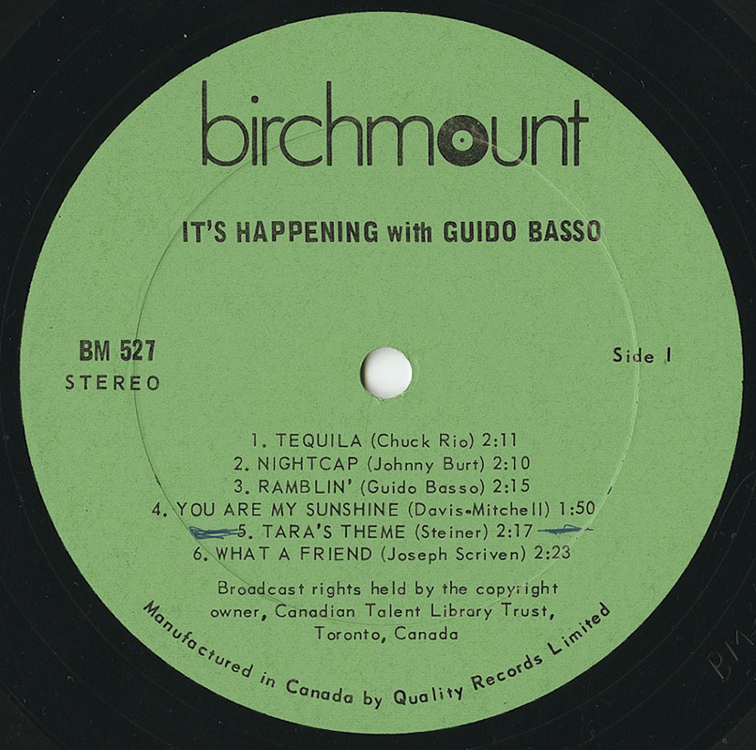 “Broadcast and public performance rights held by the Canadian Talent Library Trust, 23 St. Clair Avenue West, Toronto. Unauthorized use subject to legal action.”