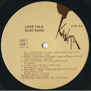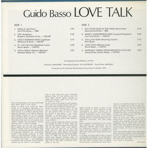 Son style particulier de Guido Basso le fait reconnaître immédiatement. Il est très humain et très vivant et sa musique est avant tout vocale. Son jeu possède des grandes qualités lyriques et romantiques et il semble presque qu’on entende une voix. Il arrive avec sa voix et son esprit et ce ne sont pas les titres ici présents qui vont me contredire : Put Your Hand In The Hand, Sweet Gingerbread Man, Too Late Now, Love Talk et Marion’s Theme (de la série télévisée Megantic Outlaw).